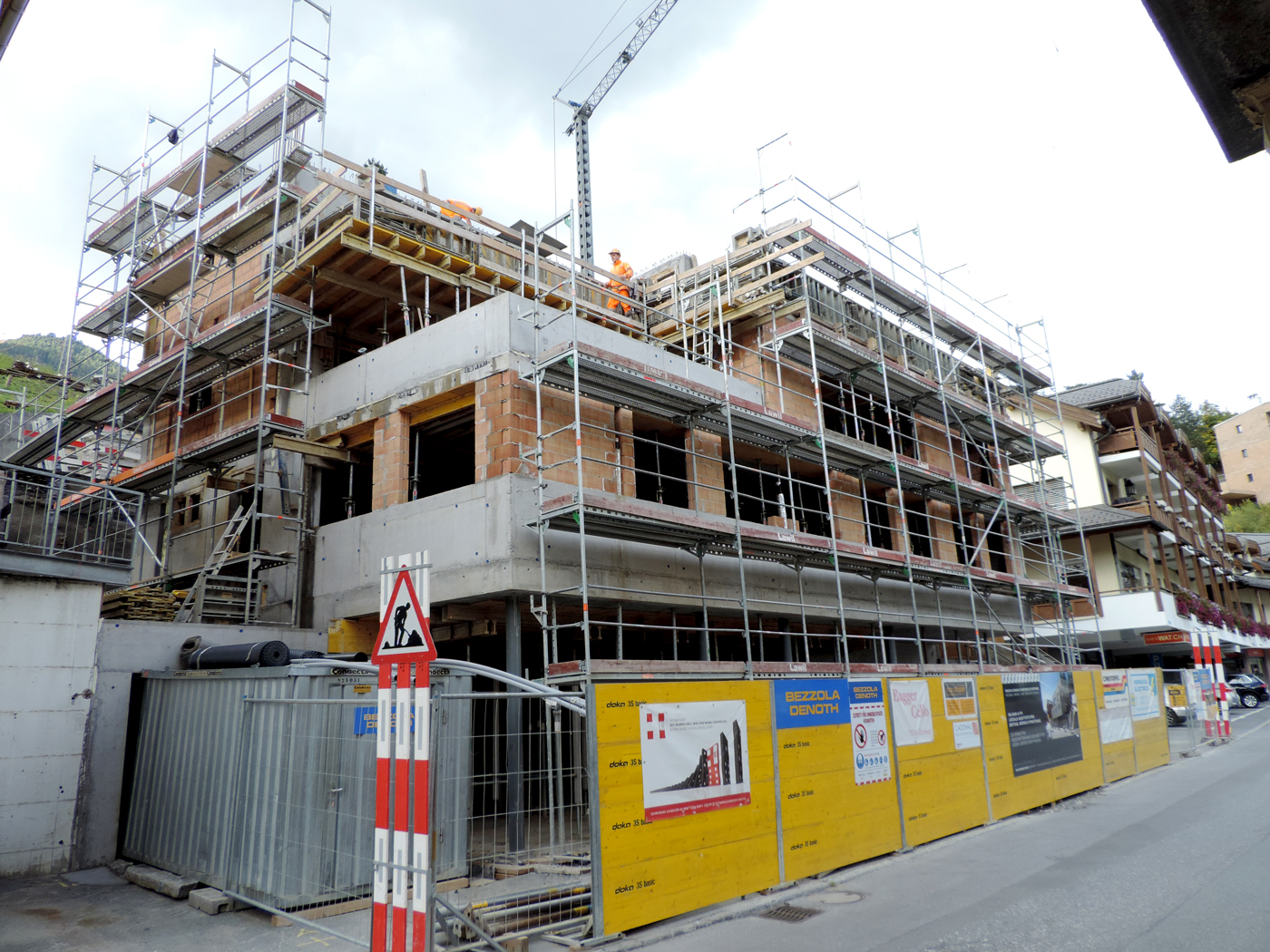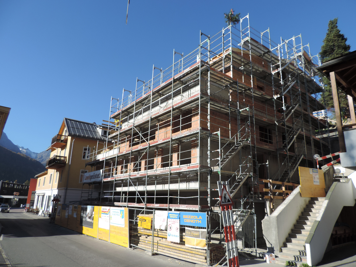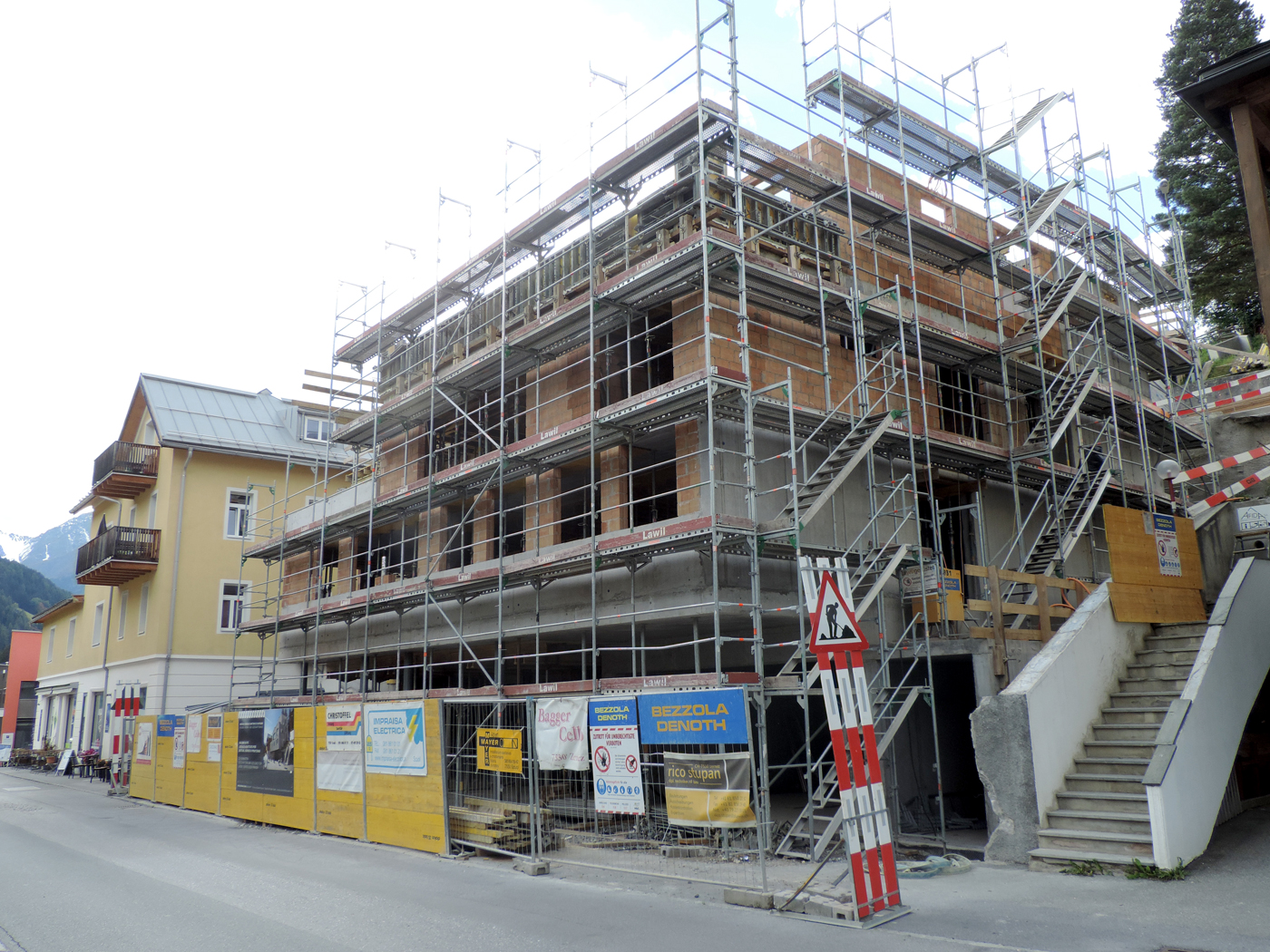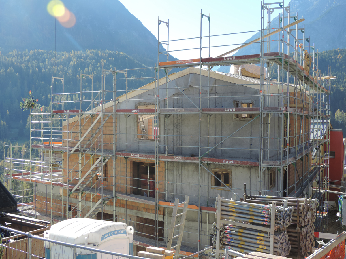 Nach dem Rückbau des alten Gebäudes in den Monaten April und Mai 2017, wird nun am Rohbau gearbeitet. Bis Ende August 2017 wird die Decke über dem 1. Obergeschoss betoniert sein. Gemäss Bauprogramm wurde die Dachkonstruktion Mitte Oktober 2017 aufgerichtet.